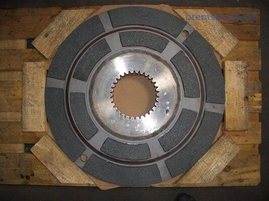 Kupplungen mit ganzen Ringen, Segmenten, einseitig oder beidseitig beklebt. Von wenigen Millimetern Durchmesser bis zu Industriekupplungen wie im Bild mit Durchmessern von über 800 Milimetern und mehreren, beidseitigen Ebenen. Alles mit speziellen, beheizten 200 Tonnen Pressen aufgeklebt.